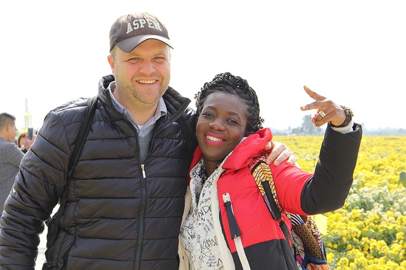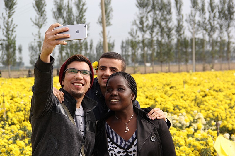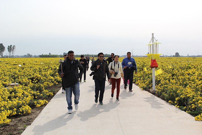 這也在拍,那也在拍,看來(lái)這些外國(guó)專家對(duì)咱們的云臺(tái)冰菊很有興趣么~各類膚色的人聚在一起共同賞菊品菊,場(chǎng)面和諧極了,看來(lái)不僅藝術(shù)能促進(jìn)各國(guó)間的文化交流,農(nóng)業(yè)照樣有聚集人心的魅力?。?/p>